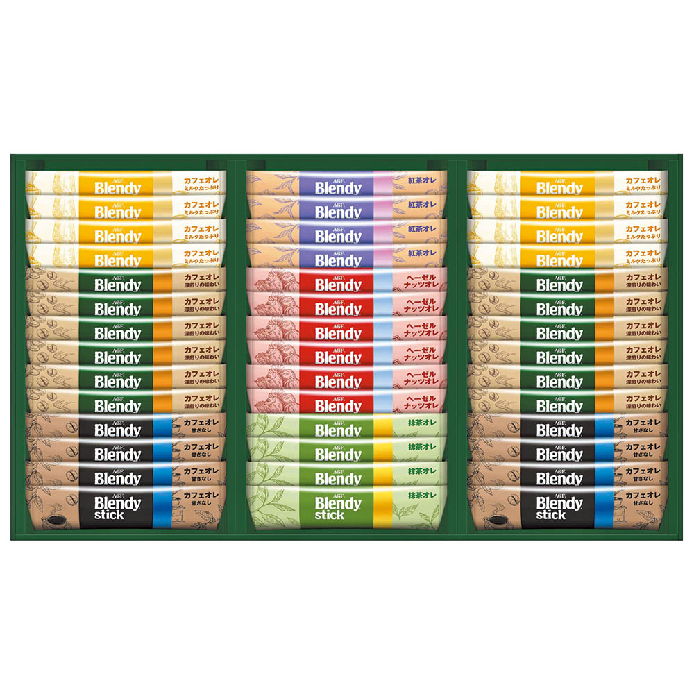 ブレンディ(R)スティック(カフェオレ×12、ミルクたっぷり・甘さなし×各8、ヘーゼルナッツオレ×6、紅茶オレ・抹茶オレ×各4)