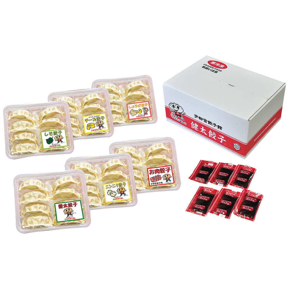健太餃子・ニンニク餃子・お肉餃子・しそ餃子・チーズ餃子・しょうが餃子 各20g×8、たれ 10g×6