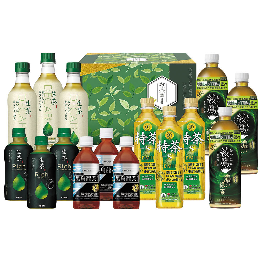 【サントリー】黒烏龍茶 350ml・特茶 500ml×各3、【キリン】生茶リッチ 400ml・生茶おいしいカフェインゼロ 430ml×各3、【日本コカ・コーラ】綾鷹濃い緑茶 650ml×3