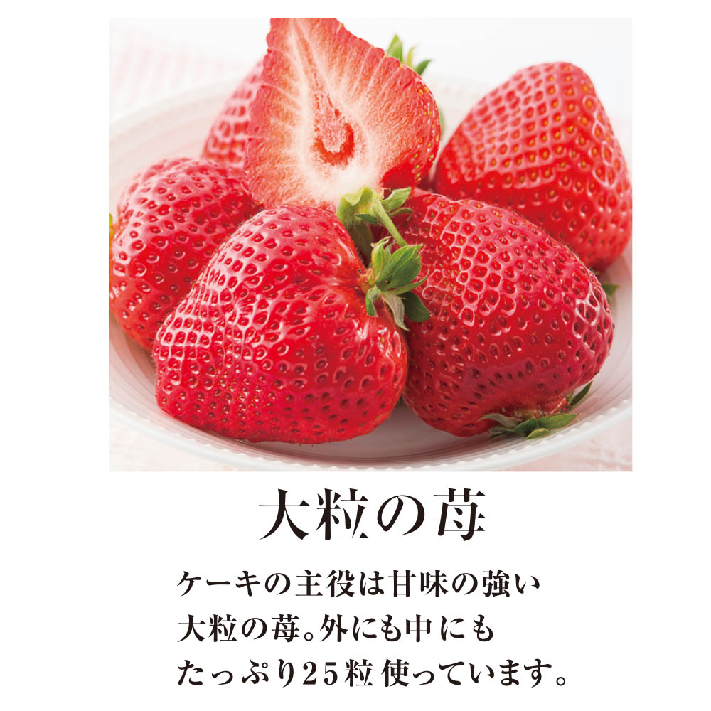 ケーキの主役は甘味の強い大粒の苺。外にも中にもたっぷり25粒使っています。