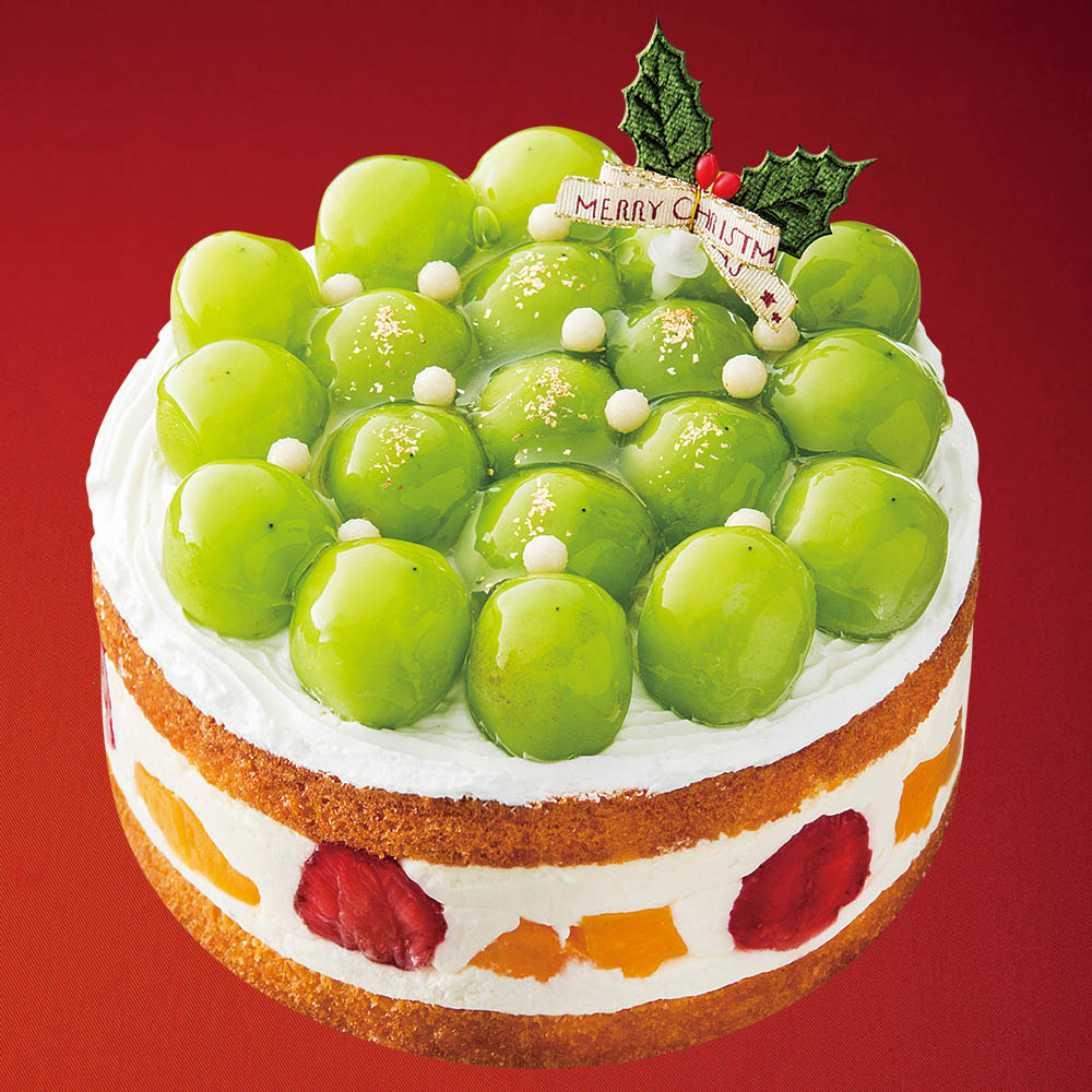 シャインマスカットのパリッとした皮の食感、ジューシーな果汁を存分に味わえる贅沢なケーキ。