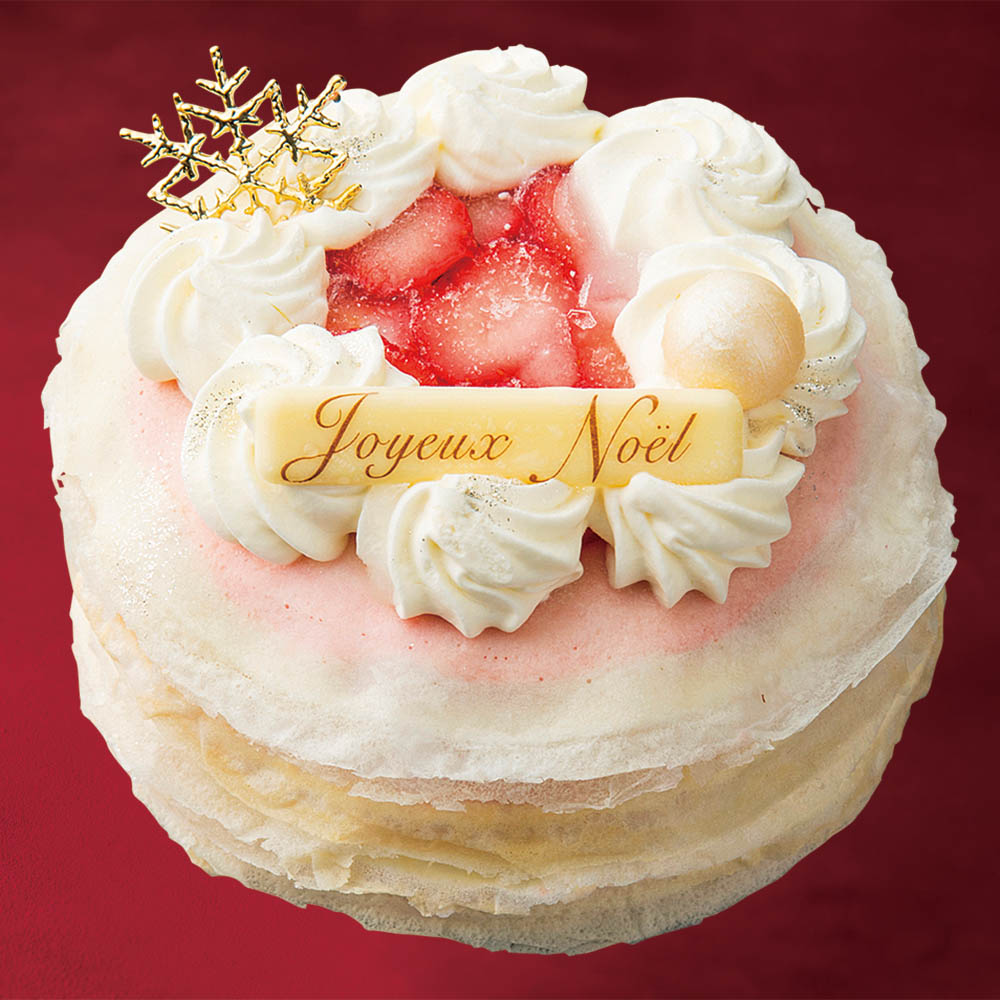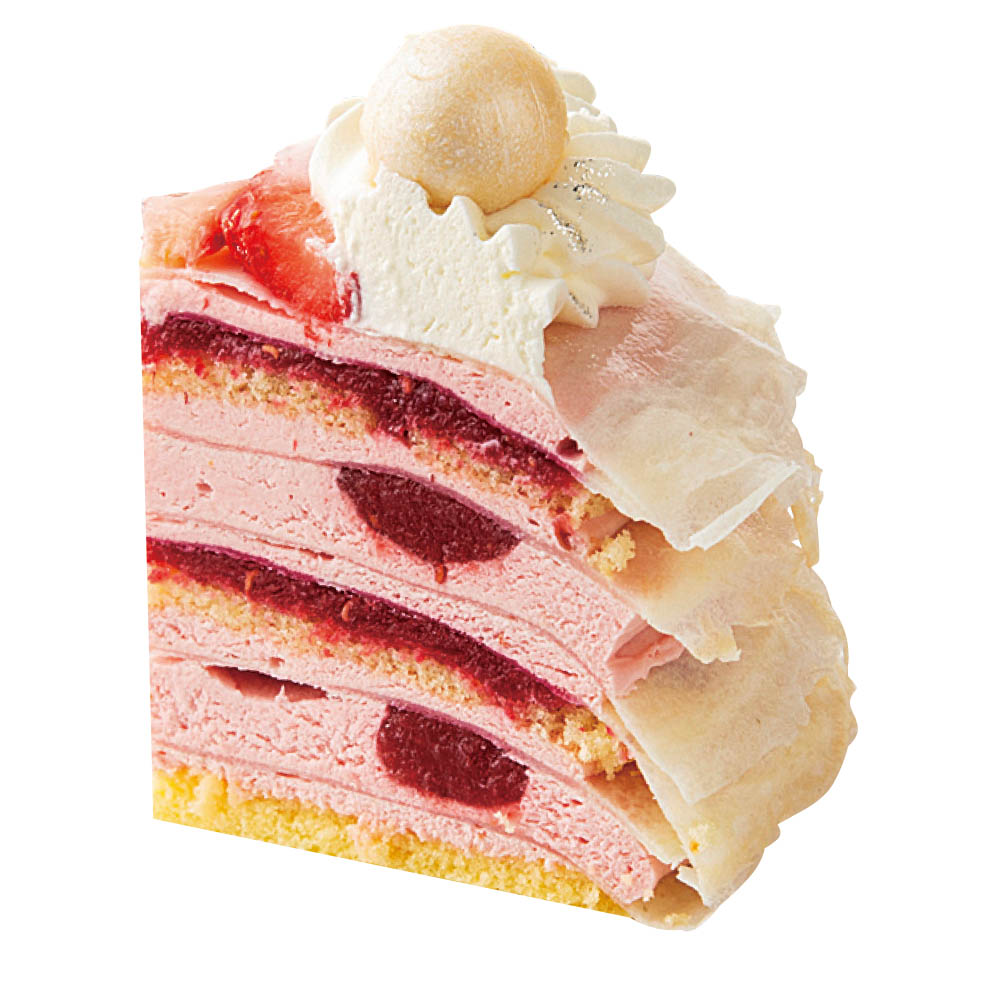苺とラズベリーの果肉感が満喫できる可愛らしいクレープケーキ。