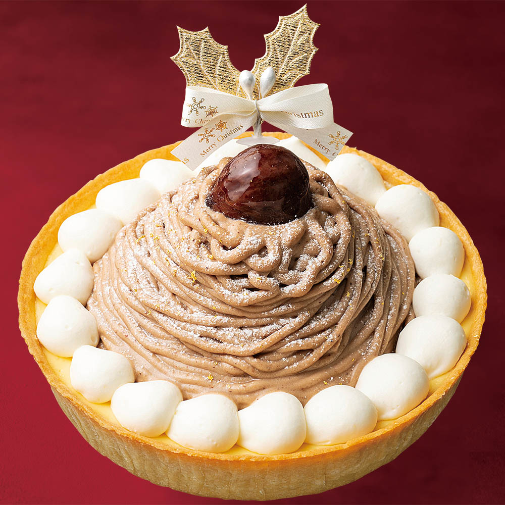 マスカルポーネチーズケーキにマロンクリームを絞ったモンブランのツリー。
