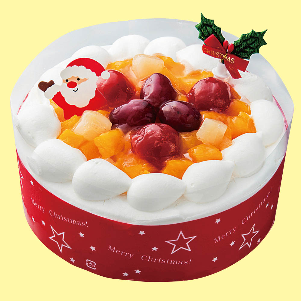 卵・乳製品・小麦粉を使用せず、米粉(国産コシヒカリ)を使ったスポンジ生地で、黄桃と豆乳ホイップクリームをサンドし、自家製のいちごゼリー・ぶどう・洋梨・黄桃で仕上げたフルーツケーキです。