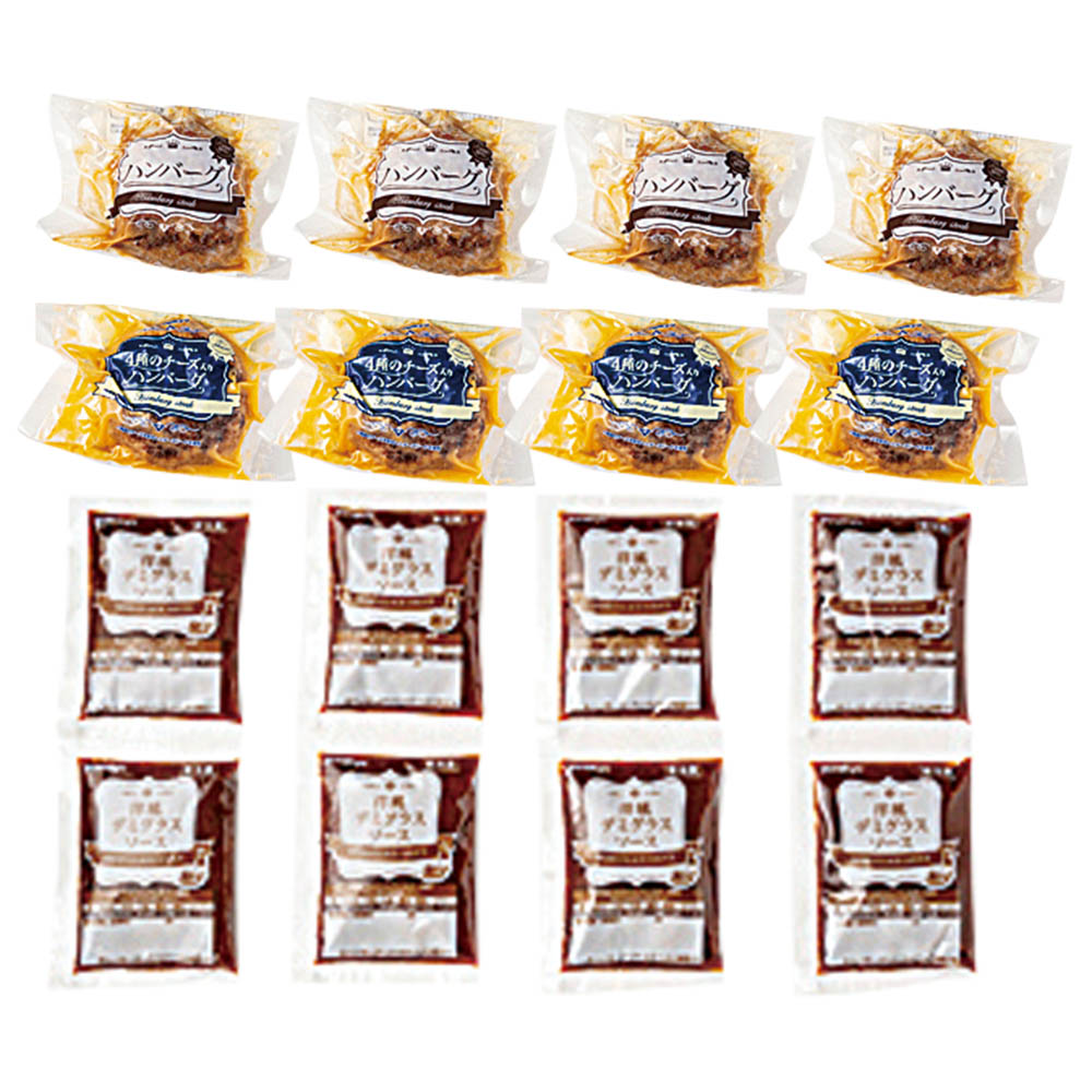 4種のチーズ入りハンバーグ 130g×4袋、ハンバーグ 130g×4袋、洋風デミグラスソース 40g×8袋