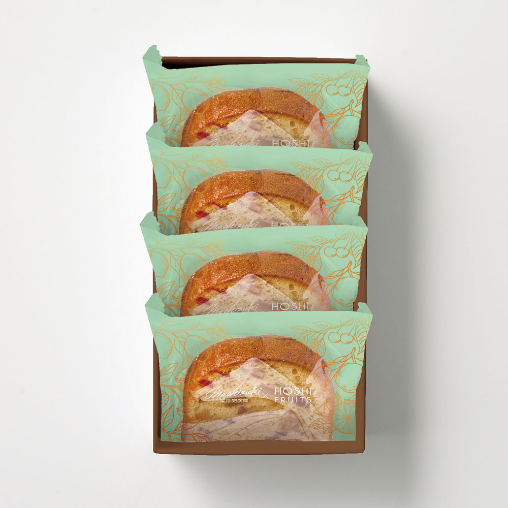 帝国ホテル東京にて長年スイーツ業界を切り開いてきた現代の名工・望月完次郎シェフとホシフルーツのコラボで作り上げた特別なお菓子。7種類のフルーツを洋酒に漬け込み、紅茶の生地でくるんだ、フルーツが詰まったパウンドケーキ。ひとくち食べ進めていくごとに、7種のフルーツそれぞれの味わいを楽しめる、ホテルシェフならではのデザートに仕上げました。