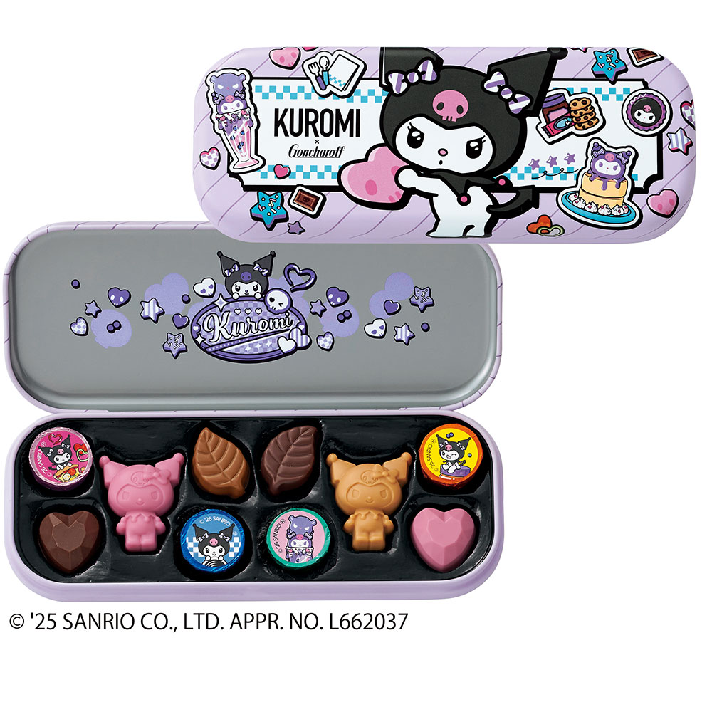 クロミ型チョコレートや、小粒チョコレートの詰合せ。缶は後からペンケースとして使えます。