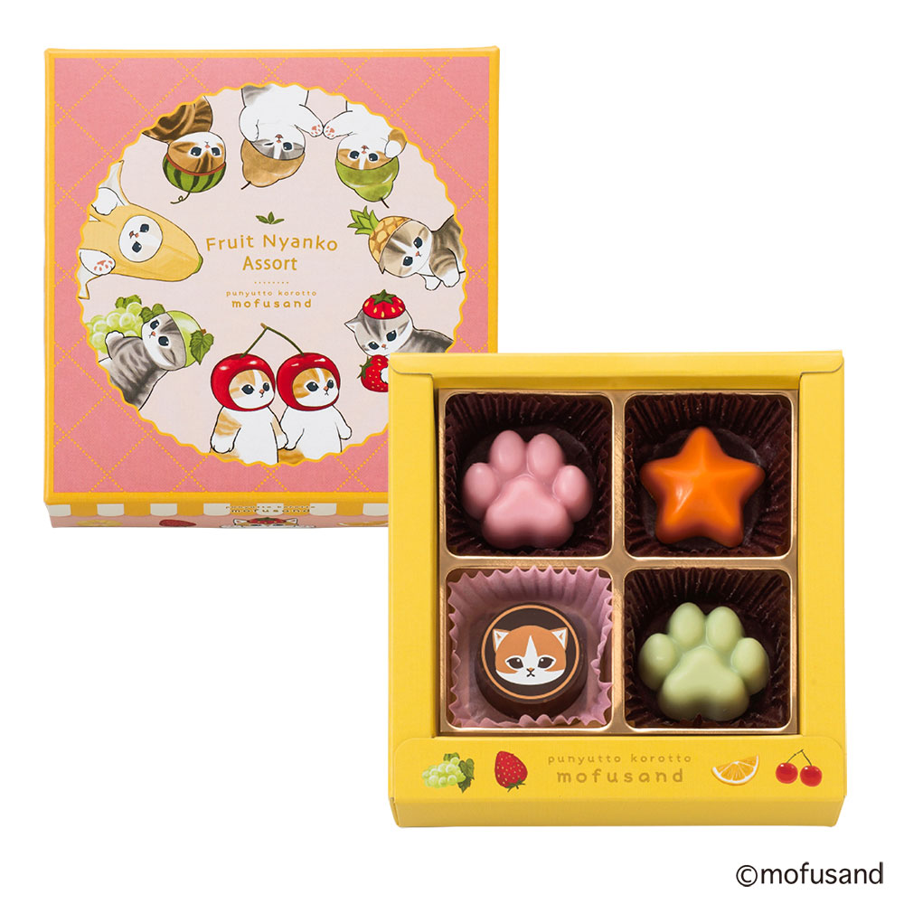 肉球型のフルーツ風味のショコラとにゃんこの転写チョコレートをアソートしたショコラギフトです