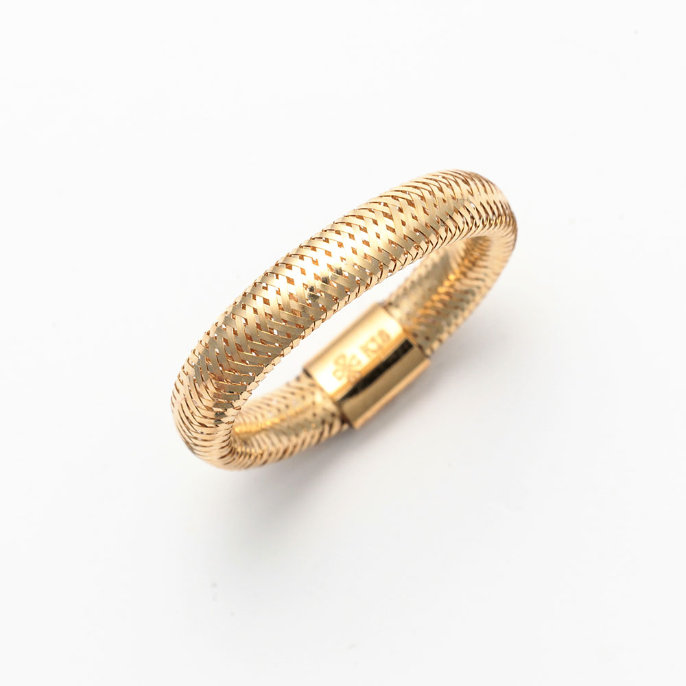 しなやかなメッシュが指に美しくフィットするK18YGフリーサイズリング。