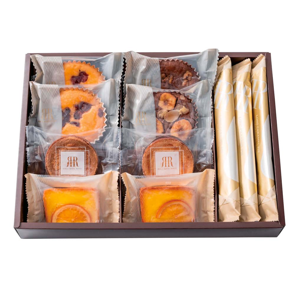 プチケーキ(ベリー×2個、ショコラ&バナナ・ショコラ&ナッツ×各1個)、ガレットブルトンヌ・オレンジケーキ×各2個、ロングキャラメルパイ×3本、RRB-02A
