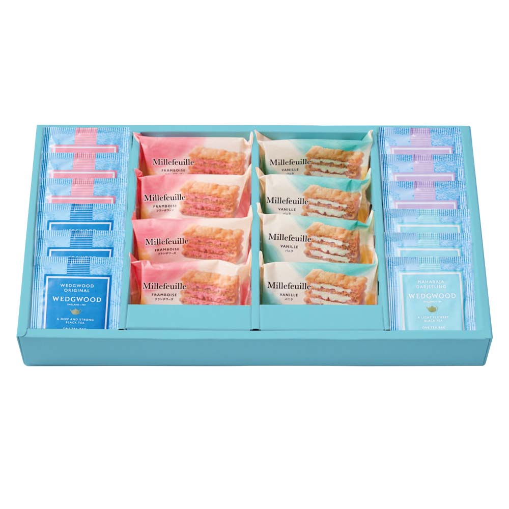 ミルフイユ(バニラ・フランボワーズ×各4)、紅茶(イングリッシュブレックファスト・アールグレイ・オリジナル・マハラジャダージリン×各3)、WWJ-04A