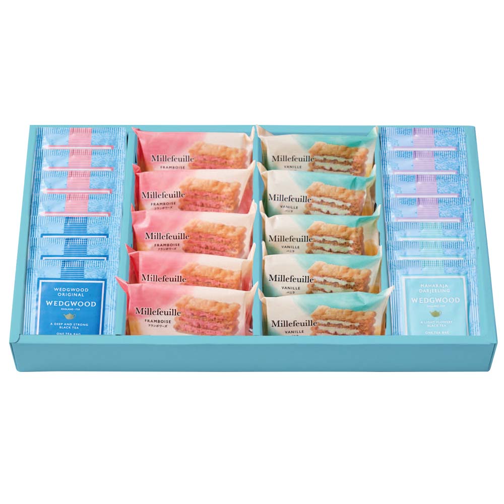 ミルフイユ(バニラ・フランボワーズ×各5)、紅茶(イングリッシュブレックファスト・アールグレイ×各4、オリジナル・マハラジャダージリン×各3)、WWJ-05A
