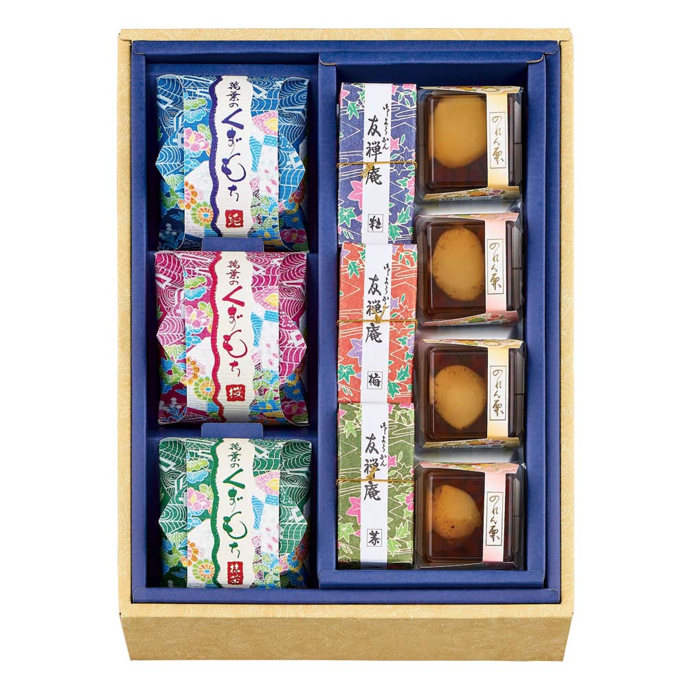 くずもち(純・桜・抹茶×各1)、友禅庵(粒・梅・茶×各1)、のれん栗×4、FR-15
