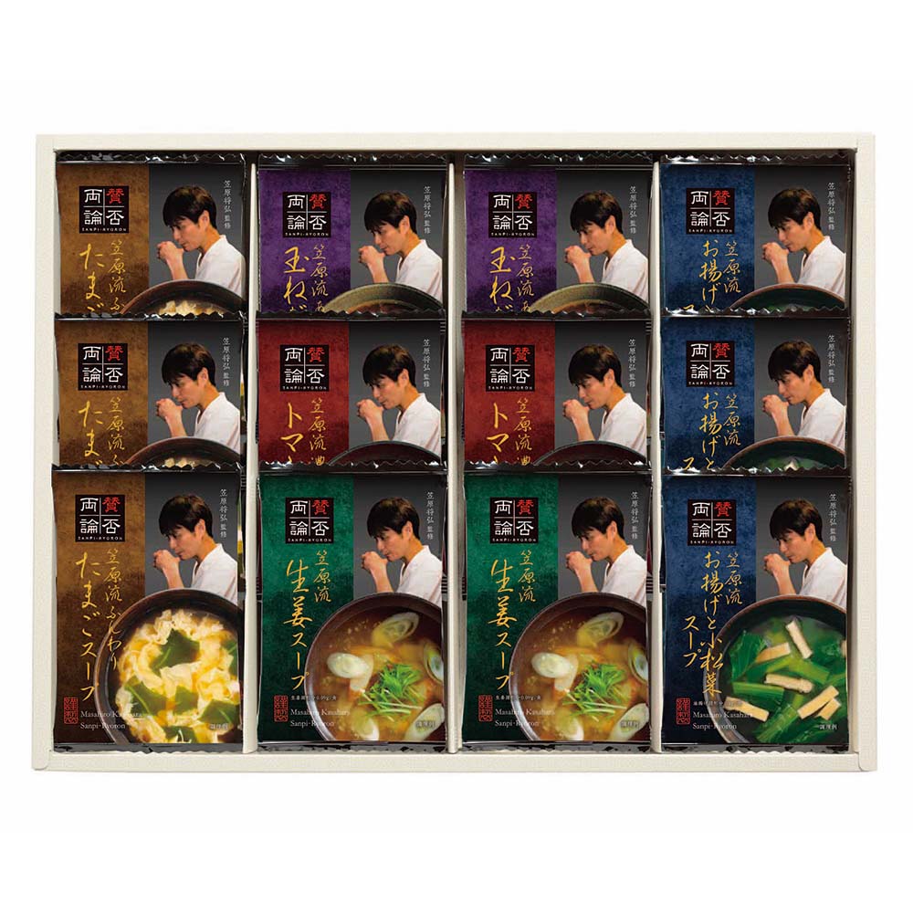濃厚トマトスープ・生姜スープ・あめ色玉ねぎスープ×各2、ふんわりたまごスープ・お揚げと小松菜のスープ×各3、NSF-E