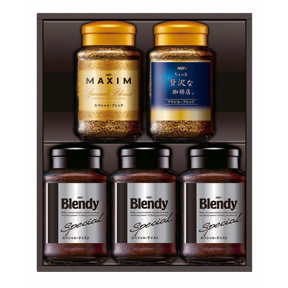 ブレンディスペシャルテイスト70g×3本、ちょっと贅沢な珈琲店ブラジルブレンド・マキシムスペシャルブレンド 各65g×1本、MQO-50D