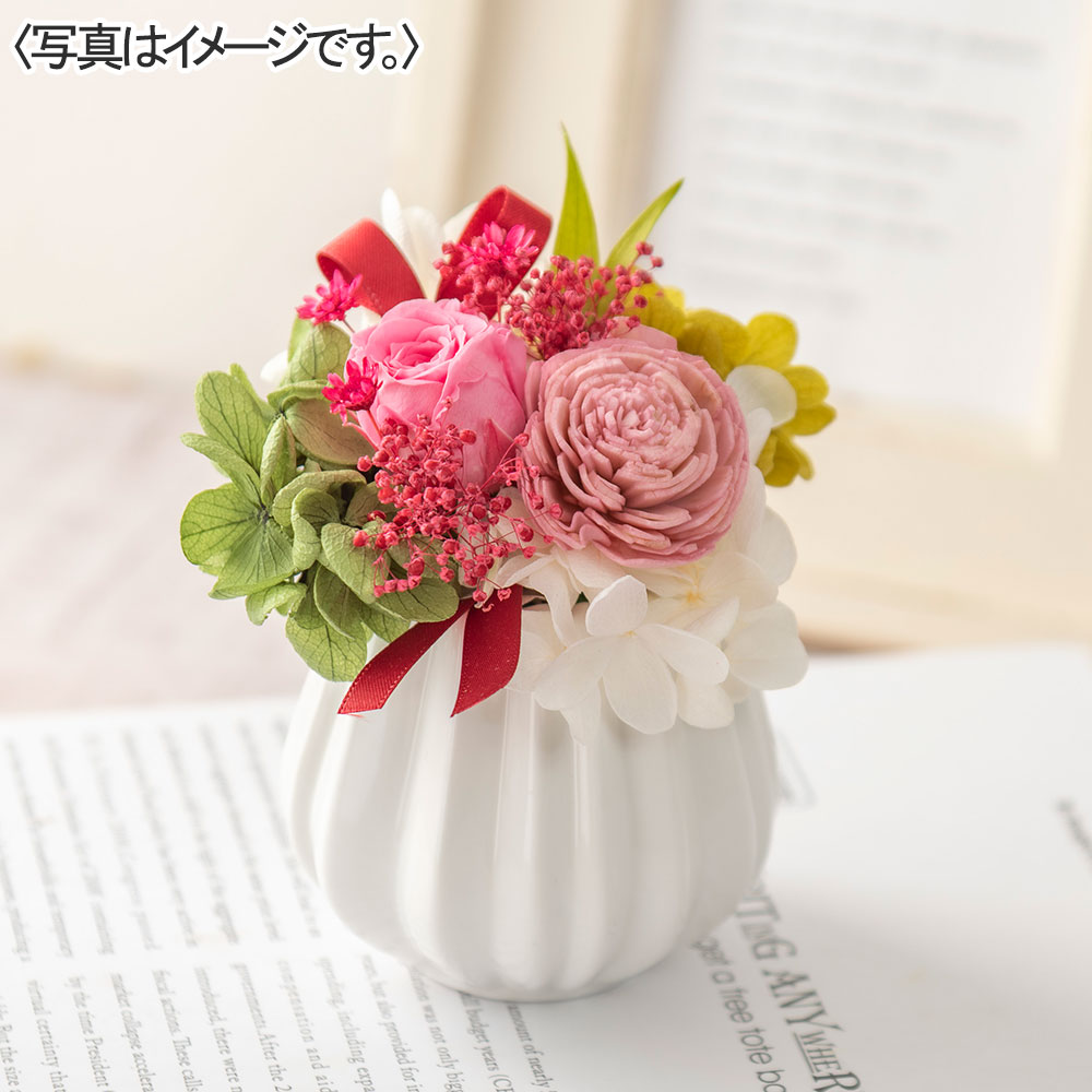 王道の優しい色合いのプリザーブドフラワーアレンジメントです。