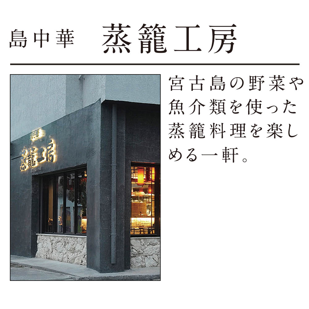 宮古島の野菜や魚介類を使った蒸籠料理を楽しめる一軒。
