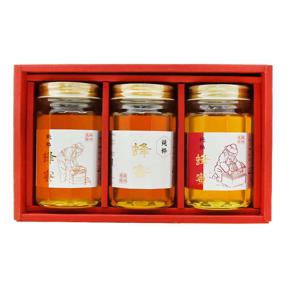 純粋蜂蜜、ひまわり蜂蜜、クローバー蜂蜜のセットです。