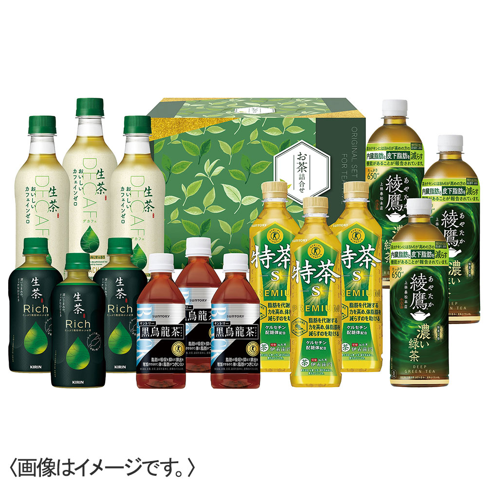 サントリー(黒烏龍茶350ml・特茶500ml)×各3、キリン(生茶リッチ400ml・生茶おいしいカフェインゼロ430ml)×各3、日本コカ・コーラ綾鷹濃い緑茶650ml×3