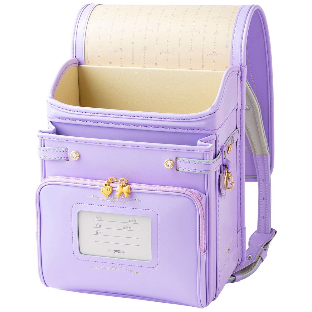 かぶせやマチベルトにリボンが付き、肩ベルトに衝撃を吸収する素材を従来の2倍使用した「楽ピタ」クッションベルトと、簡単に開け閉め出来る「くるピタ」錠前を搭載したモデルです。