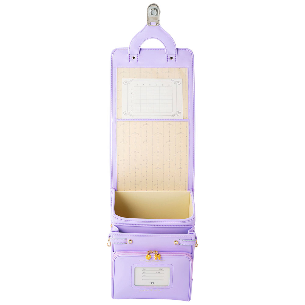 | 前段ポケット | リボンとハートの引手が付いた大きく開くワイドポケットです。 |