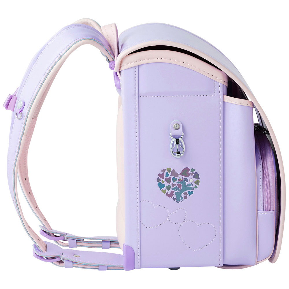 ふわりぃランドセルの特徴である軽くて容量が大きく背負いやすいのに加えて、大マチの可愛いペガサスハートがライト光に反射します。
