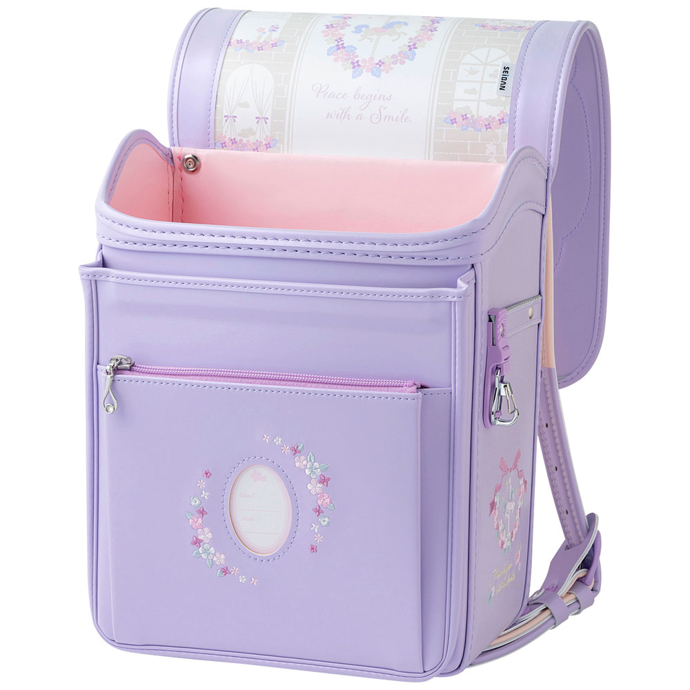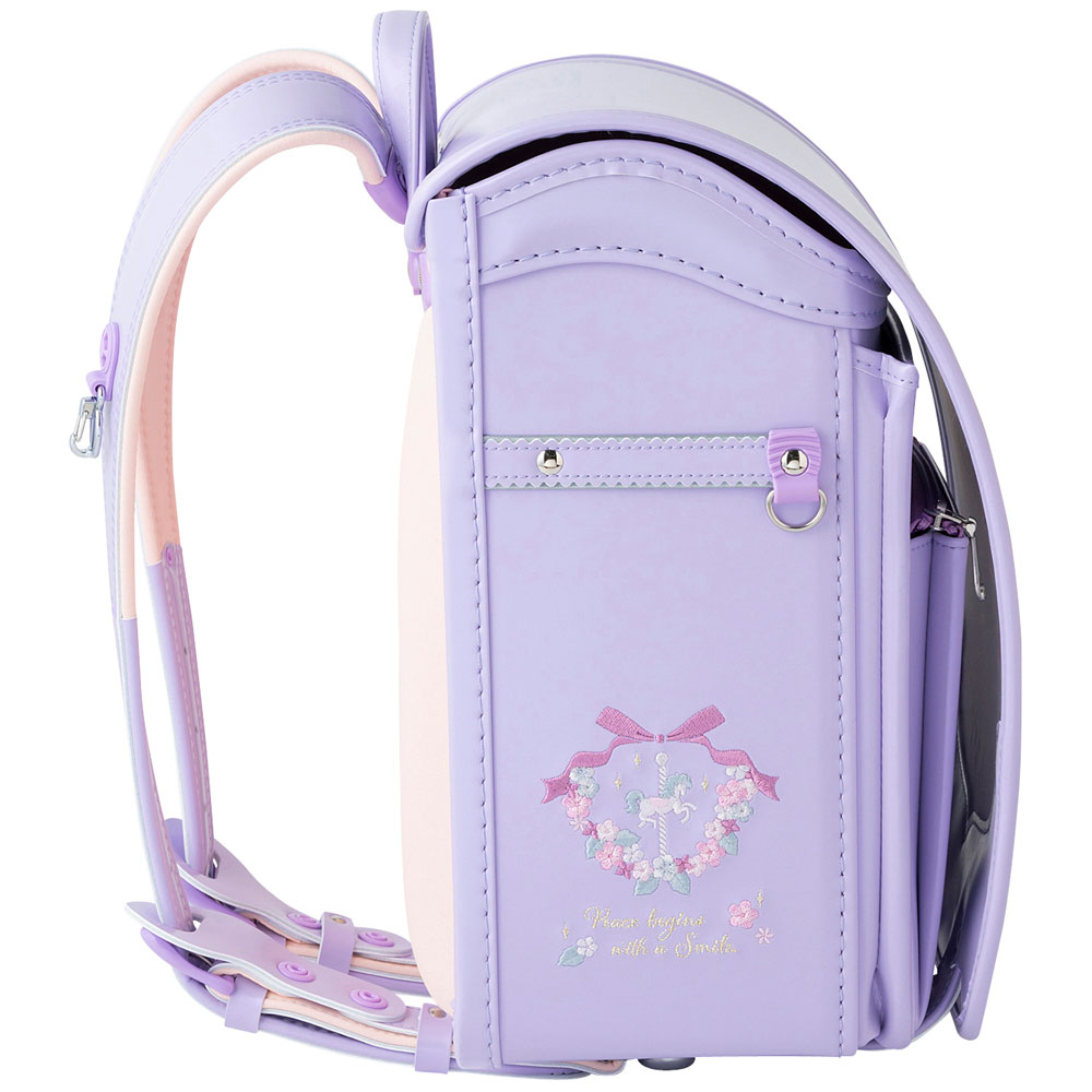 繊細なお花の刺しゅうとやさしい輝きのパール生地がロマンティックなランドセル。