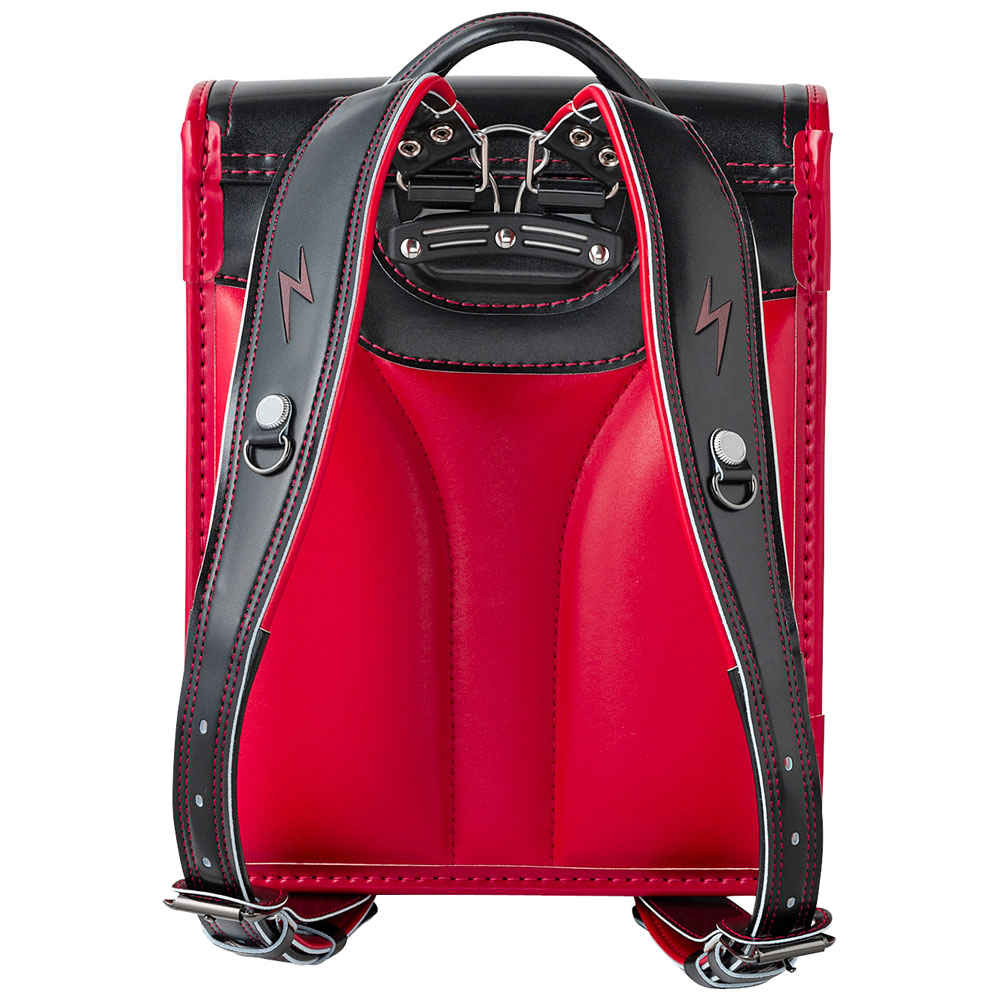 かぶせやマチ部分、肩ベルトにイナズマをモチーフにした反射材を施し、肩ベルトに衝撃を吸収する素材を従来の2倍使用した「楽ピタ」クッションベルトと、簡単に開け閉め出来る「くるピタ」錠前を搭載したモデル。