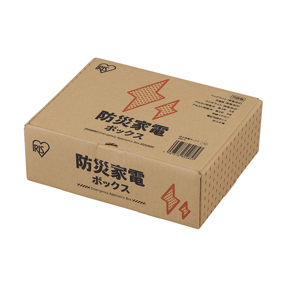 災害時の避難生活に必要な停電時の明かり対策、情報収集の際に活躍のできる用品が1箱で揃う防災家電ボックスです。