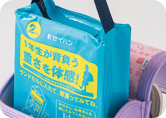 教科書を入れた時と同じような「おもり」を入れて背負ってみよう!