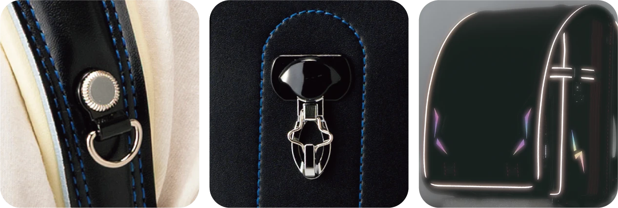 防犯ブザーの取り付けフックや反射材など細かい工夫もチェック。