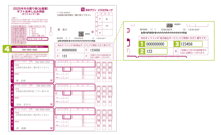 ゆめタウンよりギフトカタログと一緒に届いた「ギフトお申込み用紙」をご用意してください。